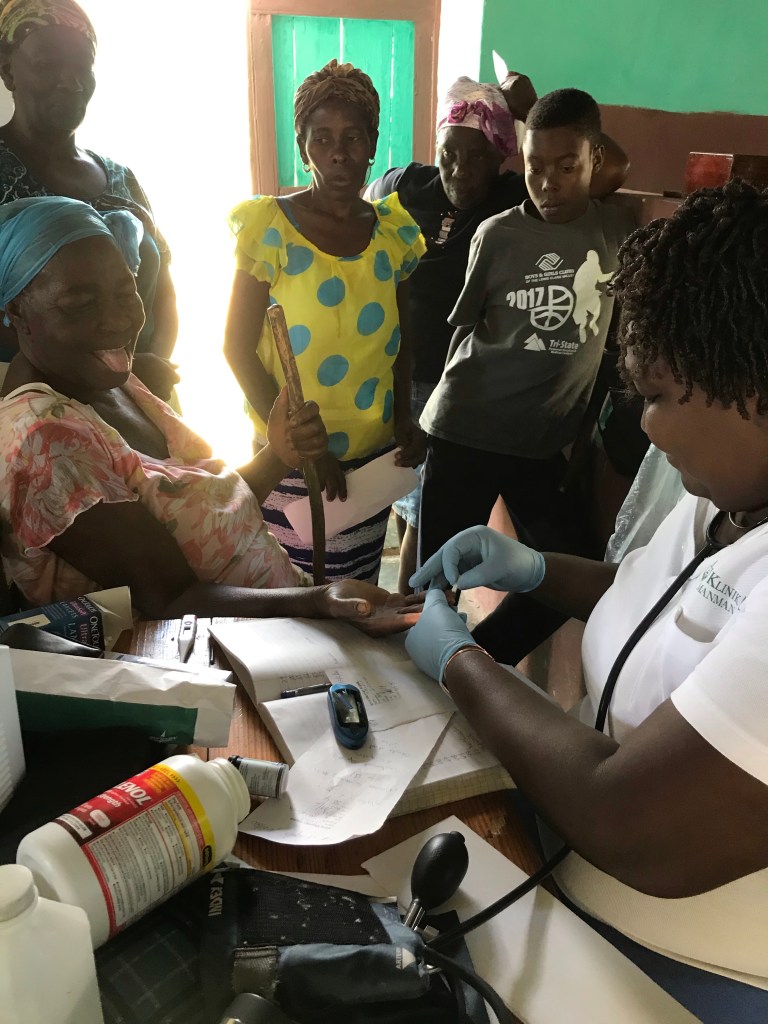 Sè. Izzy jumps right in to learn how to prepare medications with Rosemani.Dr. Yves with a patient. Dr. Valcin examining a baby.Nelie checks for sugar with a patient.In between, we enjoy taking care of the babies.