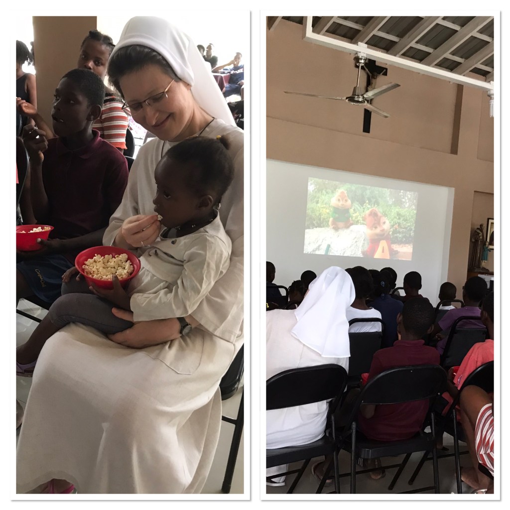 Every Friday night, we show a movie to our kids. Thanks to generous people like you who make it possible to serve popcorn and candy, our kids get to have some fun. Tonight it was Alvin and the Chipmunks. All the Alvin movies are a hit here. Even Sr. Izajasza likes movie night.