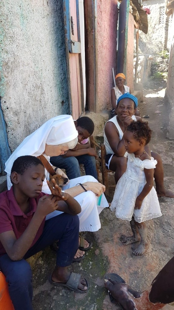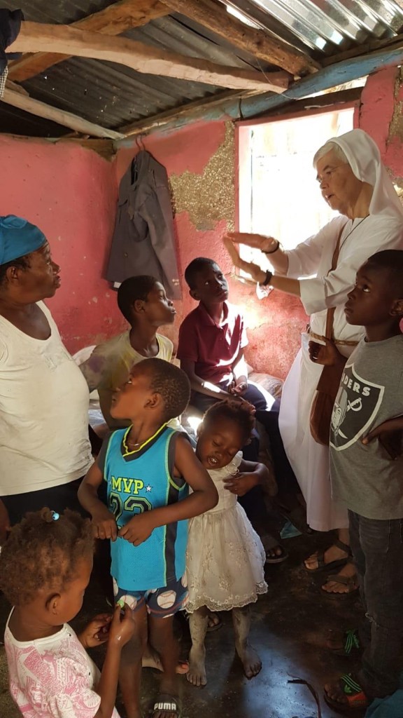 We are busy getting our sewing machines ready for our newest project–Sewing Classes! Sr. Isajasza is very talented in this area and has already set up plans for her classes, as soon as we get the new inverter and batteries installed to provide more electricity. Thank God we have one treadle machine, which is controlled by a foot pedal. It just needed some parts for it to work. This type of machine is new for Sr. Isajasza, but she was getting the hang of it!