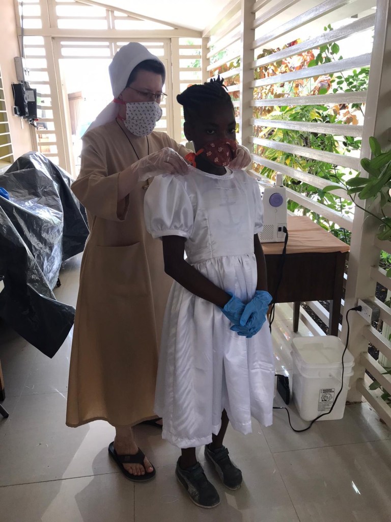 Even though we do not know when, we are doing what we can to prepare for our children’s First Holy Communion. Sr. Izzy is busy measuring, sewing, and trying on outfits while keeping good social distancing, of course. Sr. Inga is busy getting all the prayers to the kids so they can continue to learn them for the glorious day, whenever that will be.