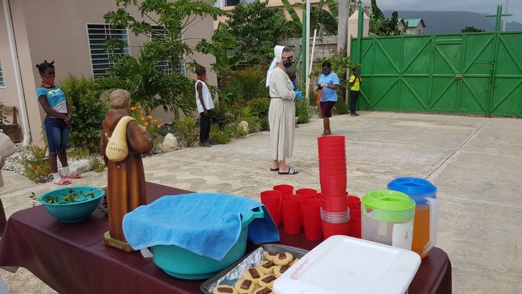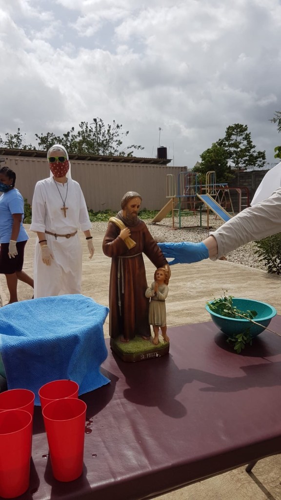 We wanted to celebrate our novena in preparation for the feast of St. Felix in a different way. We decided that, whenever a child came to the gate, we would share with them the story of St. Felix and give them a candy. For the babies, we would give them a toy. As the nine days unfolded, we saw what joy this simple gesture gave to kids. During this pandemic, our activities have been put on hold; but daily someone would be at our door.