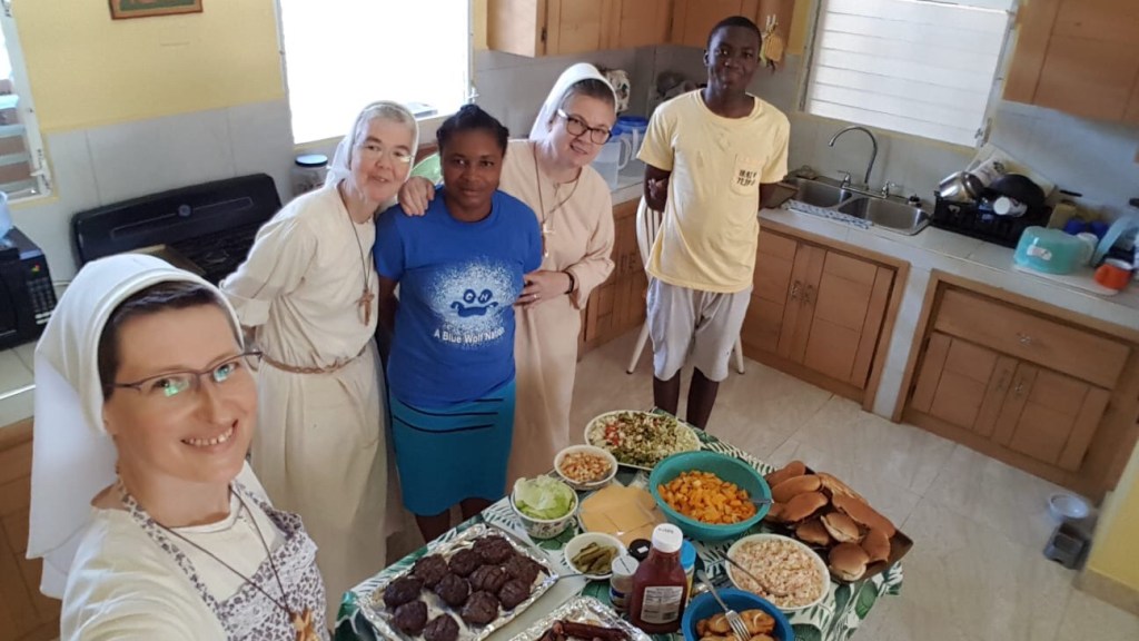 On Sunday, May 17, we decided to celebrate together the feast of St. Felix with a barbecue. We had much to celebrate–St. Felix, of course; Jean Philip who lives in St. Felix House on the property; and the past birthdays of Annette and Sr. Inga. It was a great celebration!