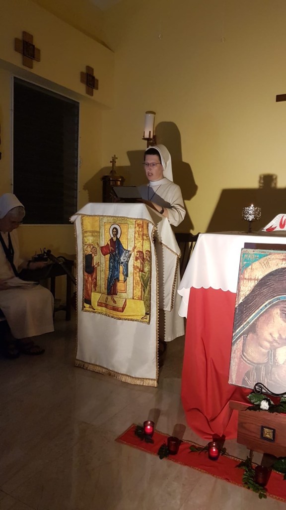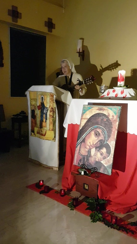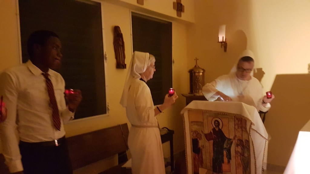 This was not like any other year that any of us had experienced on the Vigil of Pentecost. On Saturday evening, we gathered in our Cenacle to keep vigil after the example of the Apostles and disciples who, with Mary, the Mother of Jesus, persevered in prayer, awaiting the Spirit promised by the Lord. Like them, we, too, listened with quiet hearts to the Word of God. We began with a procession from Mary’s grotto to the chapel, our Cenacle.