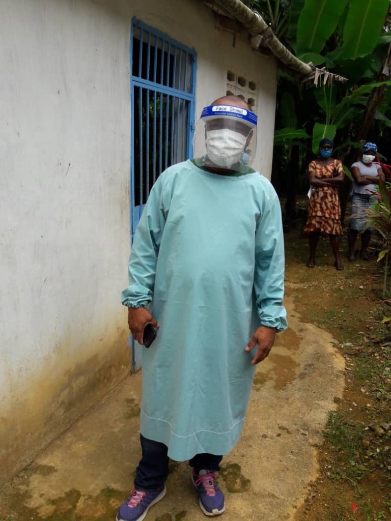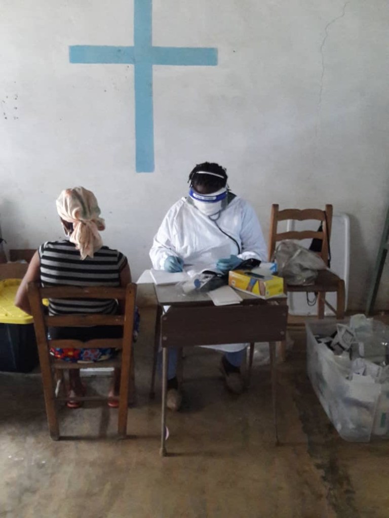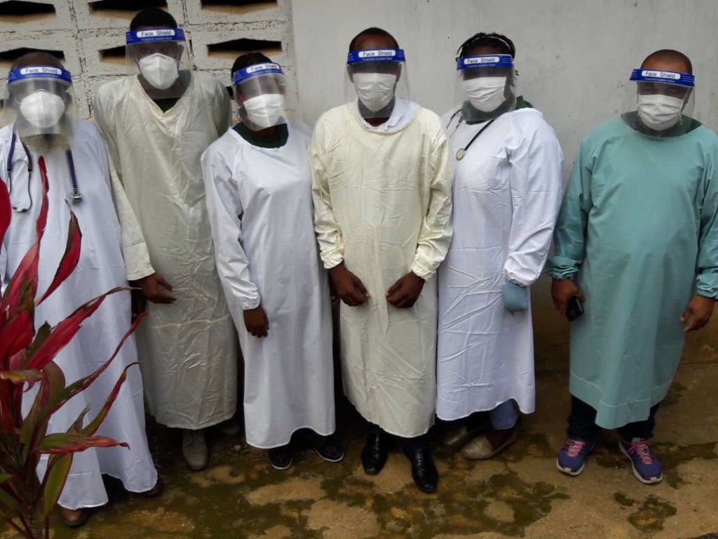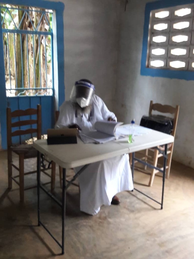 The above words were said by Dr. Yves and Dr. Valcin who lead the Mother Angela Clinic here in the Diocese of Jacmel. The Coronavirus is on the rise in Haiti. Like other poor countries, there is no protection from this widespread enemy. Here the hospitals are closed because doctors have no supplies or protective gear. The Mother Angela Clinic is the only mobile clinic, visiting villages located in the mountains. We, too, were struggling with no protective gear. We reached out to some organizations and were able to acquire 8 paper gowns and 16 masks. We knew we had to do something quickly, so we reached out to Helen Yee, Director of the Felician Sisters Care Center in Lodi, NJ. She immediately sent us, via FedEx, some much-needed face shields, an infrared thermometer and some masks. She had no disposable gowns to spare because, in the States, they are difficult to purchase at this time. We needed to act fast. That led us to Plan B. We found some sheets that could be made into gowns, and Sr. Izzy went to work. Within 24 hours, everyone had two gowns each and a bottle of Clorox to wash them. The clinic follows the regulations given from the Ministry of Health–no more than five people gathered in one space at a time. Keeping patients faithful to social distancing is a new job for Fritz, our driver, as well as telling everyone to wash their hands from a bucket with water, Clorox and soap for hand washing. Please pray for our Mother Angela Clinic team who are willing to face the battle and this war against the Coronavirus.