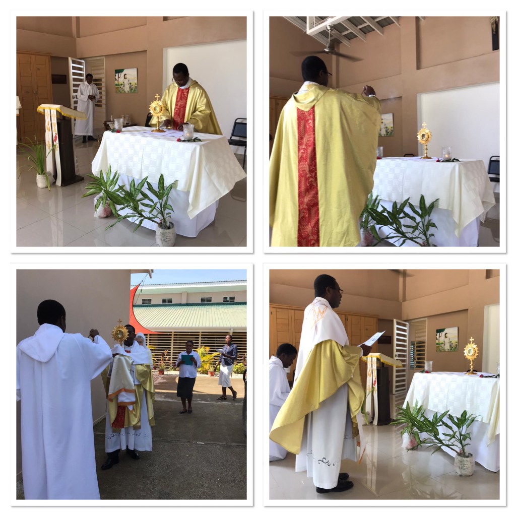 On Thursday, June 11, here in Haiti, we celebrated the feast of the Body and Blood of Christ. We were very blessed to have Mass and a Eucharistic Procession around our mission compound. Fr. Maurice carried Jesus and, as we approached the main gate and opened it, he blessed all of Haiti and the world to be healed of the coronavirus.