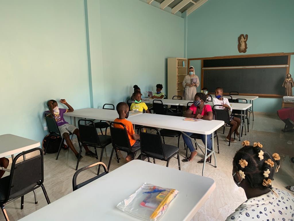 Sister Inga works with the youth who have been helping us as catechists. We want to be sure that the children learn more than just reciting prayers, but that they understand and experience the love of God that comes to them through the Sacraments of Baptism, Reconciliation and Holy Communion. It is not an easy task in Haiti. To move beyond teaching children prayers is difficult, even for our seminarian that was helping us in the name of the parish. To memorize and recite what they learn seems to be a goal that most of the schools here set before themselves. However, to pass the parish exams, the children must learn all that is demanded. And they are ready.