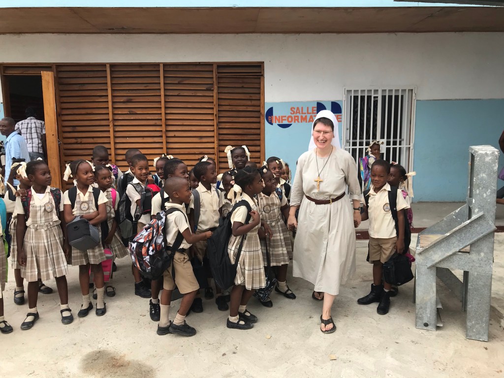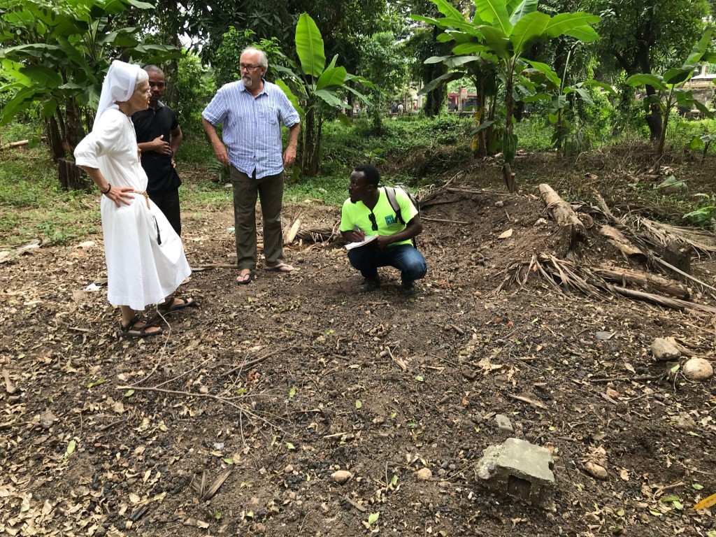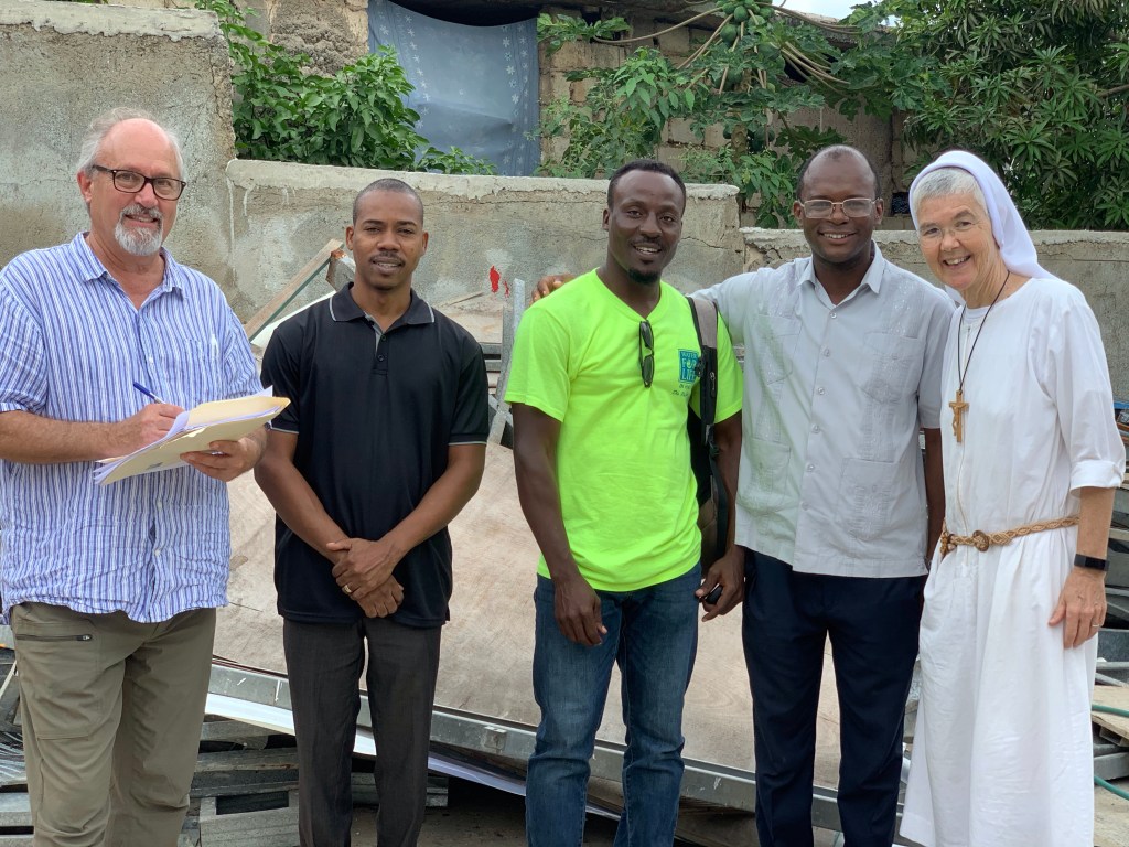 From left to right: Jean Paul, Hubert, Claude (Water forLife), Fr. Lauture Jean Claude (Director of the School) and Sr. Marilyn.Sr.Izzy enjoyed meeting the school kids.New land given by the Pastoral Center for the new bakery and cafe. Here we making plans for the well.