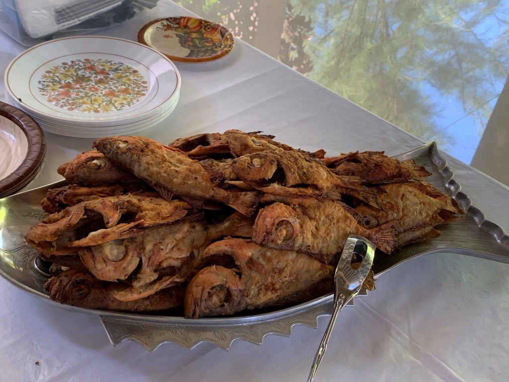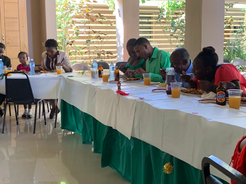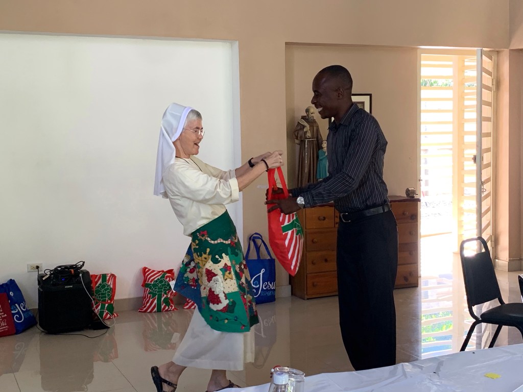 Christmas Wafer…OplatekEnjoying a delicious dinner…fried fish from the Caribbean Sea……banan, pikles, and dire jon jon! Delicious!Enjoying some delicious homemade lasagna!Some dancing!Taking a moment to say thank you for serving the poor with with us!Now for the moment everyone waits for…the gifts!Dr. Valcin was certainly happy getting his gift.Dr. YvesFritz and his daughter, Naida, and John, our grounds keeper.