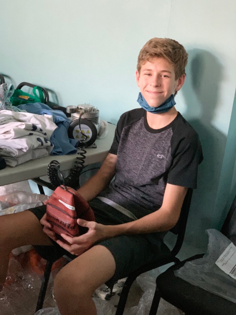 Eric and Jean Philippe work diligently, setting up our new security cameras. Cassandra gets our 500 plus cookies ready.Mitchell, with the help of our new pump from Tom Conboy, Director of the Newark Archdiocesan Youth Center, prepared 65 soccer balls for gifts.