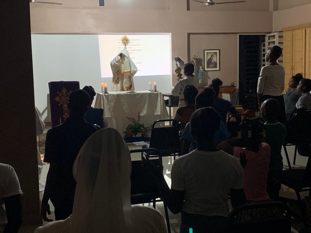 Friday is a day of fast and forgiveness in preparation for the Sacrament of Reconciliation.Sharing meals together…Sr. Izzy takes a break with some participants.Preparing for Sunday Eucharist…Singing the Responsorial Psalm: My soul rejoices in my God!“Are you the Prophet?” John answered, “No.” So they said to him, “Who are you, so we can give an answer to those who sent us? What do you have to say for yourself?” He said: “I am the voice of one crying out in the desert, make straight the way of the Lord, as Isaiah the prophet said.”