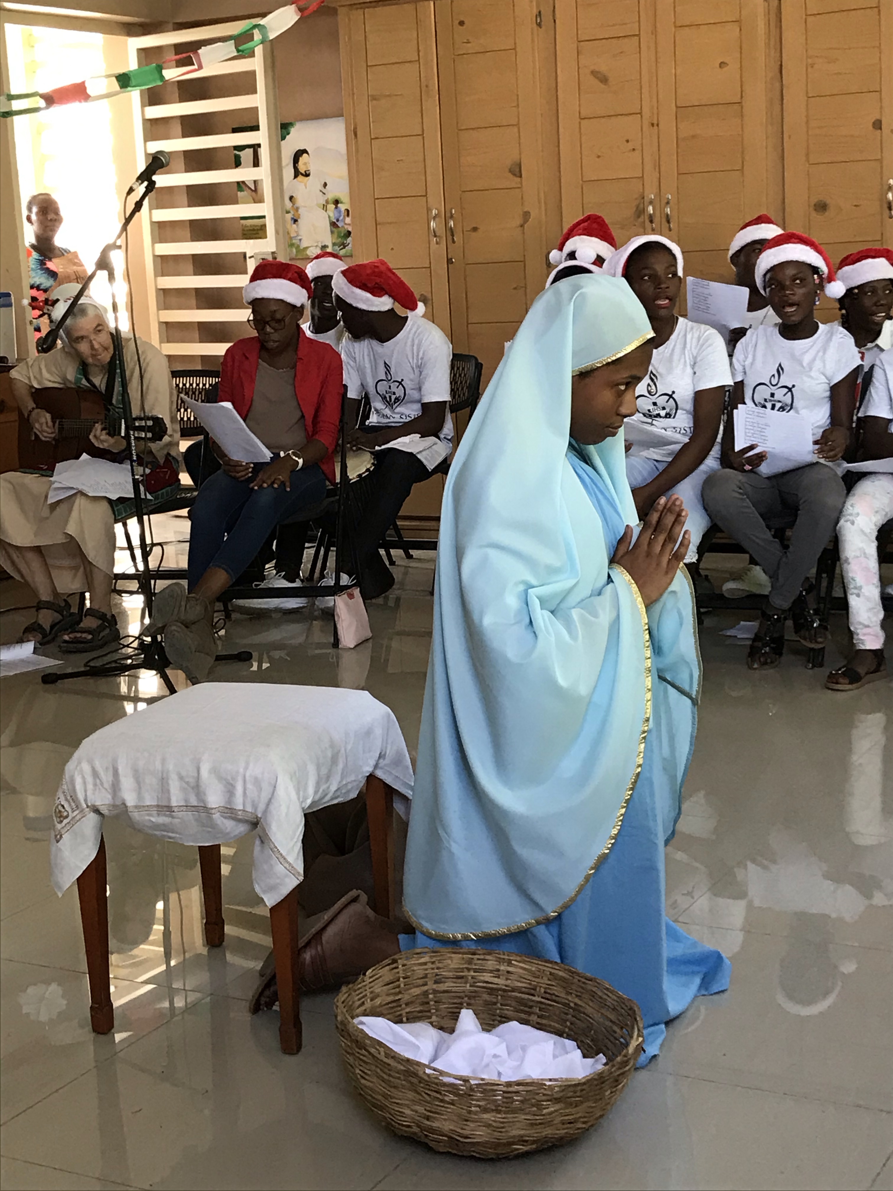 On Sunday, December 20, all those who share the mission with us came for the celebration. The Mother Angela Clinic Team; our cook for the Mother Angela Kitchen; our other workers, together with their spouses and children, joined in a wonderful afternoon of sharing the meaning of Christmas.