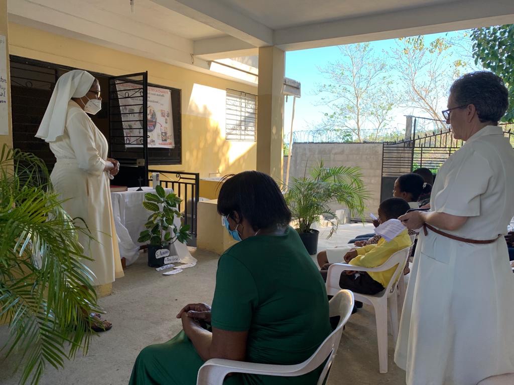 Fr. Bertrand, director of Caritas for the Diocese of Jacmel celebrated the Mass. After Mass everyone enjoyed a PowerPoint, created by Sisters Izzy and Marilyn, that took us through the years of remembering. Sisters Inga and Julitta made delicious cakes and quiche that all enjoyed after the Mass!
