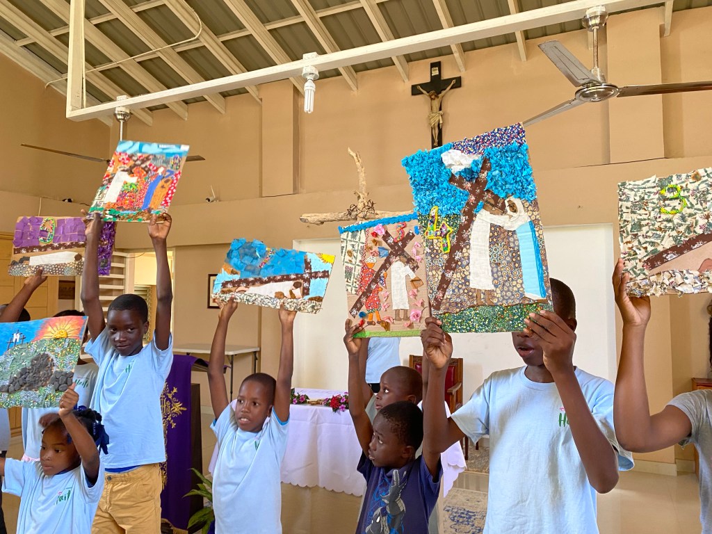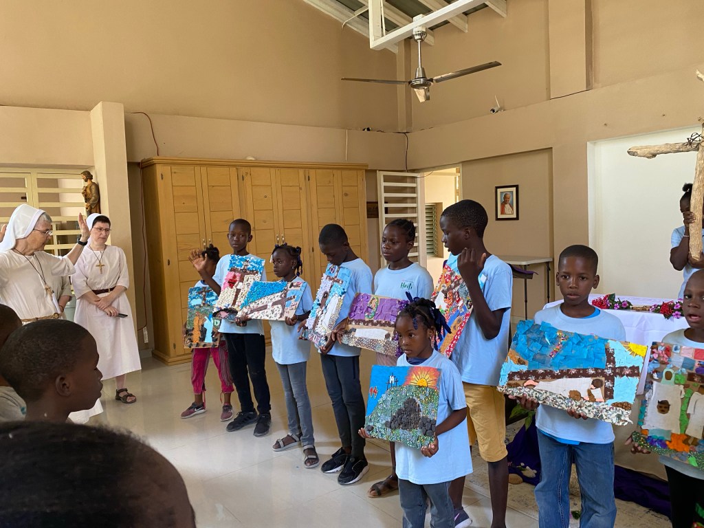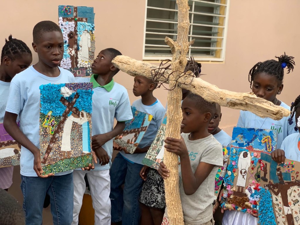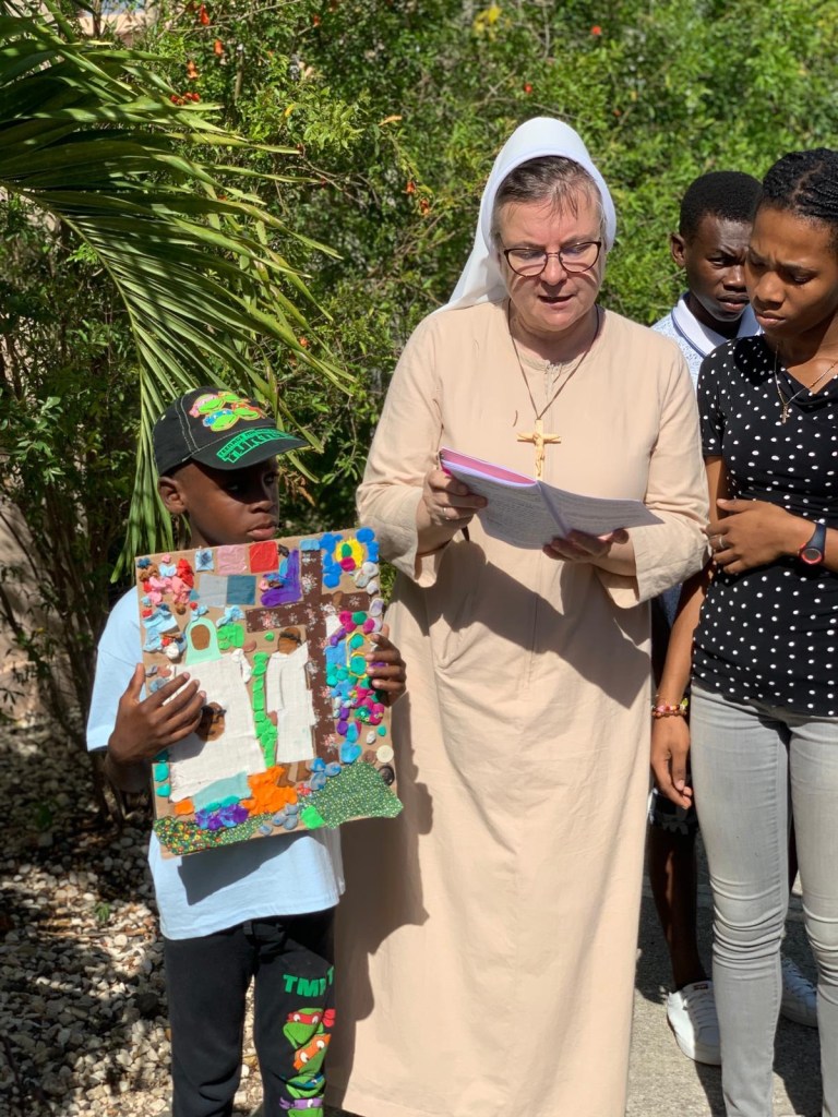 We have a tradition in the Felician Haiti Mission that during Lent we make our own Way of the Cross on our holy ground. This year, the kids made their own Stations of the Cross. On Friday, March 18, at 3 p.m. our journey began. We prayed for peace in the world, starting in ourselves, healing in Haiti, and for an end to the war in Ukraine.