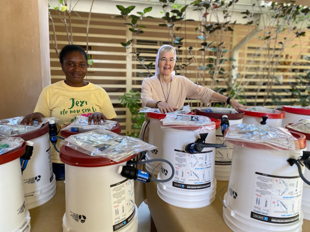 Friday, March 25, Sisters Inga and Marilyn met with Madam Omani and Annette to prepare for “Water Servants that Give Life.” In this simple 3-hour program,a woman from a village is given a bucket and a filter, and she is trained how to share life-giving, clean water with others.