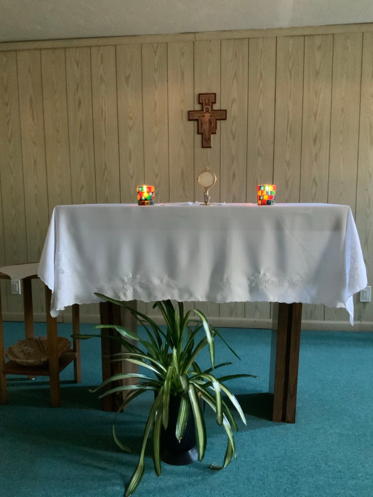 Continuing our mission to be about the spiritual renewal of the world and our call to prayer and adoration, we gather daily in our chapel. Already we have welcomed people of the faith community at St. James to join us. Simple, yet holy!