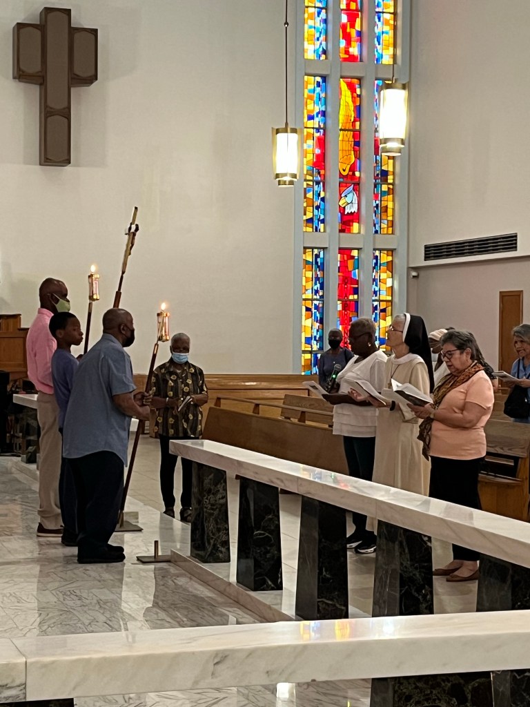 Sister Inga calls those who are asking for Baptism, Communion and Confirmation and presents them to the parish and for a blessing to go to St. Mary’s Cathedral for the Rite of Election .