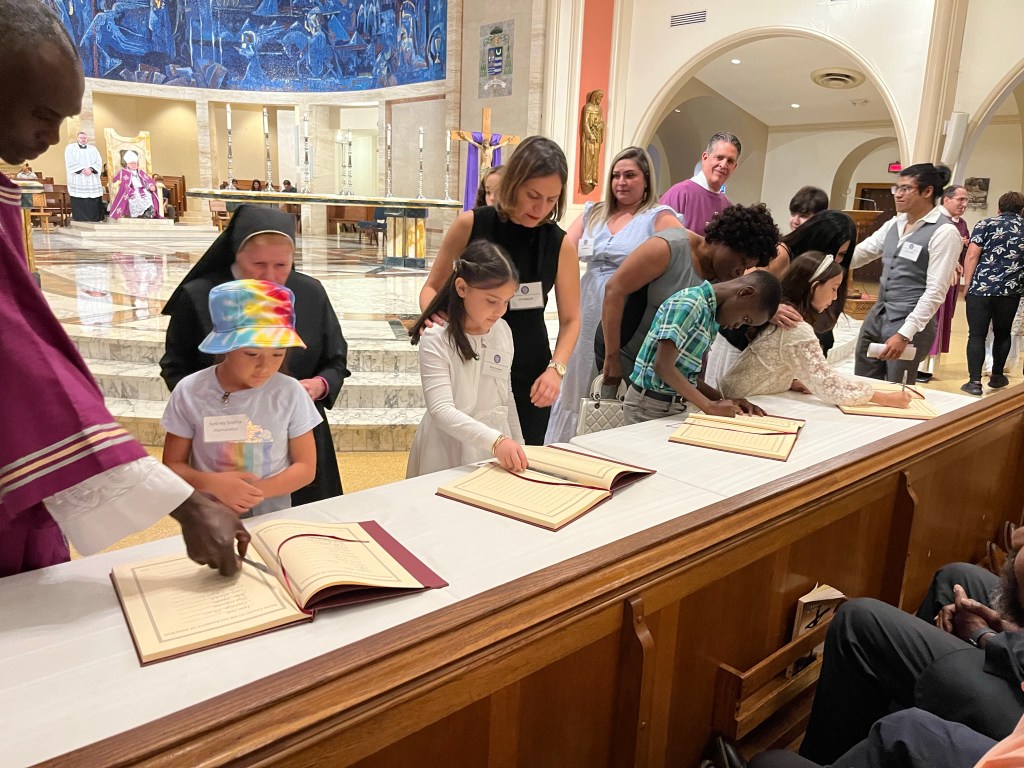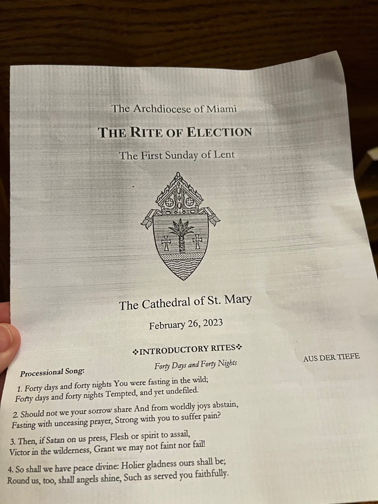At 4:00 p.m. the Catechumens with their sponsors met at St. Mary’s Cathedral in Miami. Catechumens from all over the Archdiocese were gathering. This was the second group to meet. The first group had met earlier in the day for the Rite of Election with Archbishop Thomas Wenski.